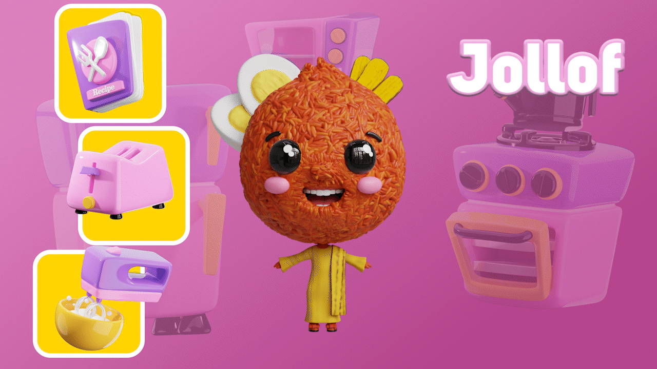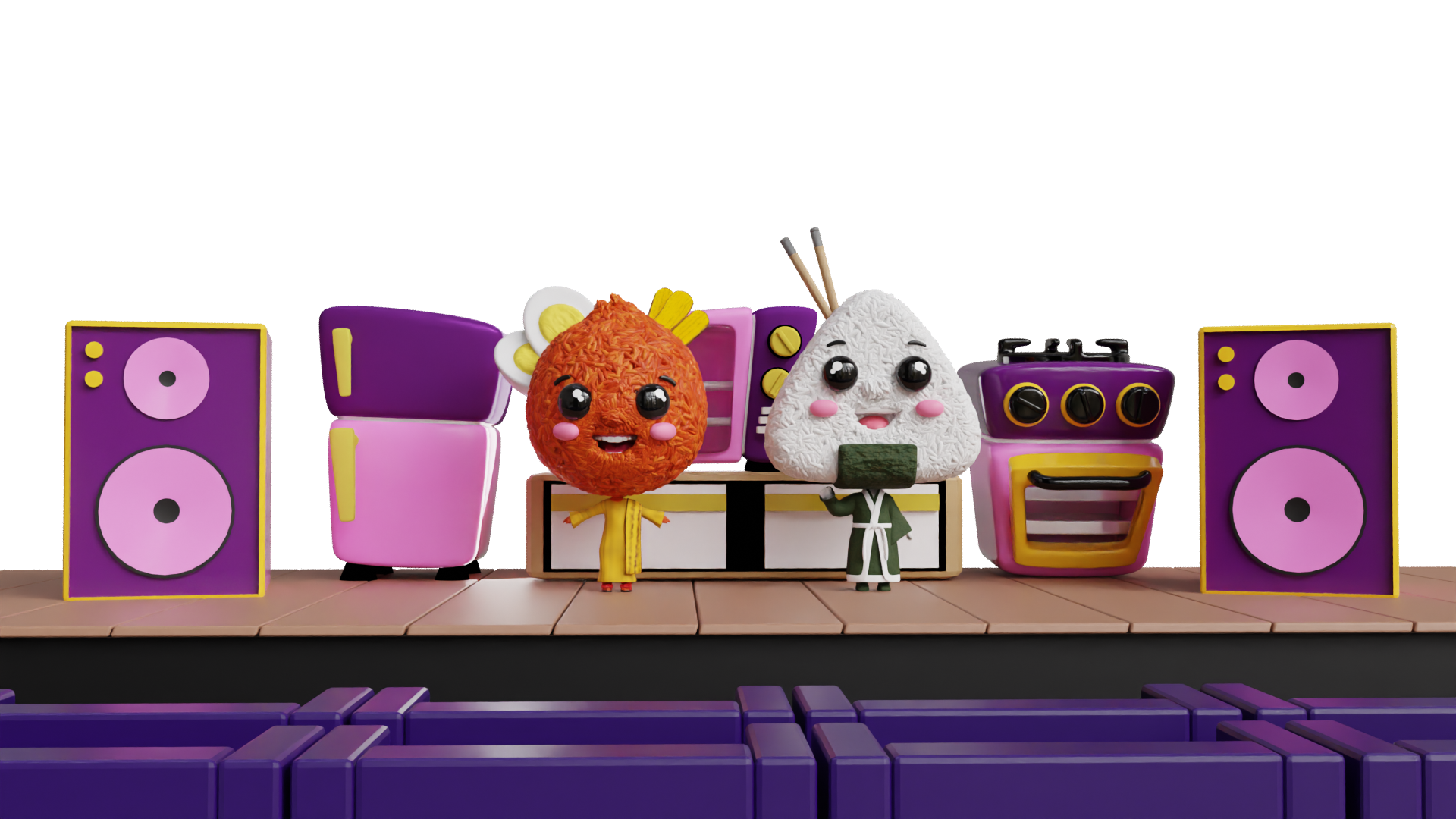 Meet our Rice Friends or Bap Chingu (팝 친구) in Korean are our Foodie Friend characters. Jollof is a Nigerian Rice Friend with a plantain dress and hair decoration, and boiled egg which is typically served with jollof rice. Kimbap is a Korean Rice Friend dressed in seaweed, accessorizing with stylish chopsticks.